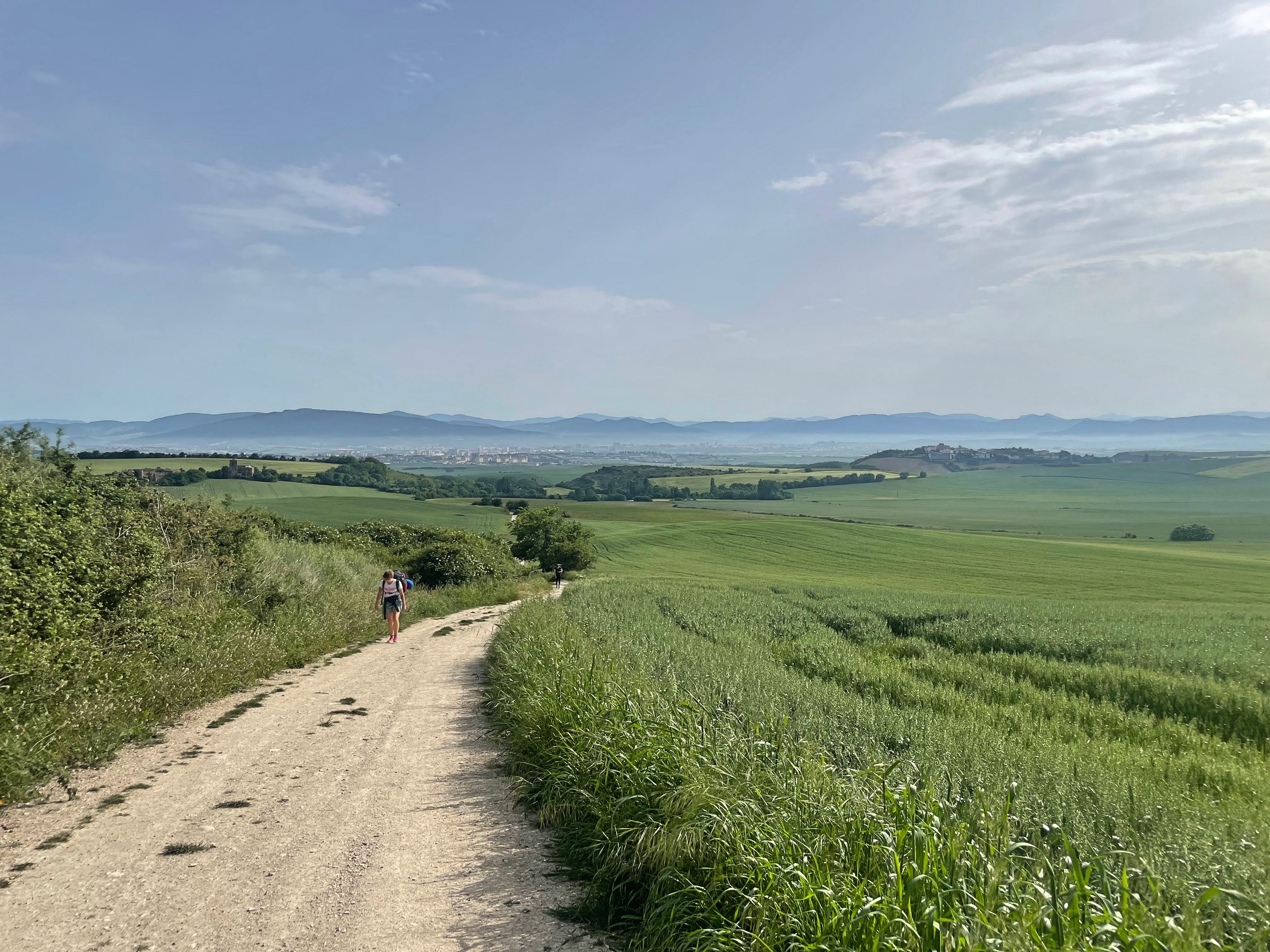 We walked from the outskirts of the town to the center of Pamplona in the dawn and passed through the old city through the medieval walls watching the sunrise. The whole town was asleep except for the pilgrims.